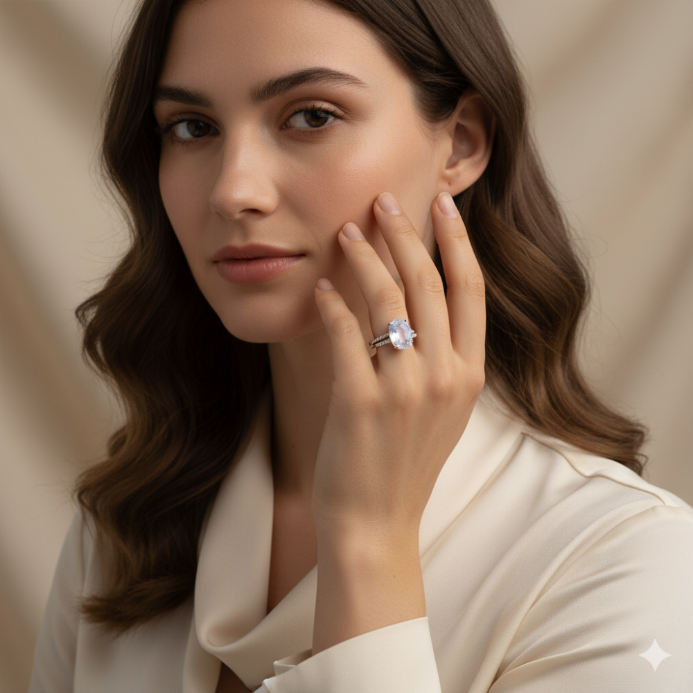 Adjustable Fish Fin Ring – Blue Gemstone, Silver Tone | Enduratrend